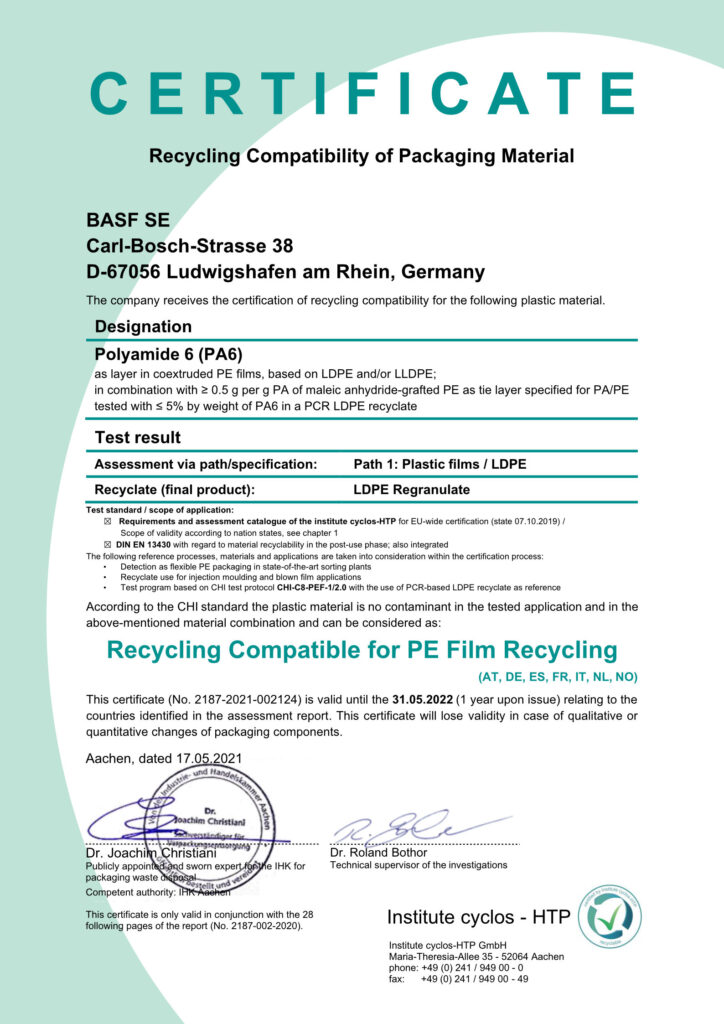 De vacuümzakken van Hevel zijn 100% recyclebaar, getest en goedgekeurd door BASF. De grondstoffen kunnen opnieuw worden gebruikt, wat aanzienlijk milieuvriendelijker is dan het gebruik van bio-zakken waarbij telkens nieuw moedermateriaal nodig is.